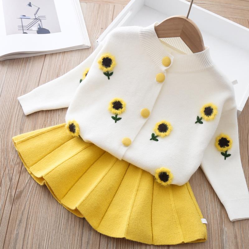 Girls Autumn Dresses New Foreign Style Children's Sweater Pleated Skirt Two-Piece Baby Girl Knit Suit Trend